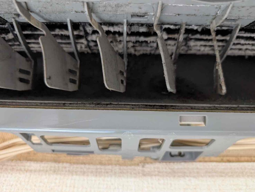 ファン、送風口がかなり汚れており、真っ黒な汚水💦